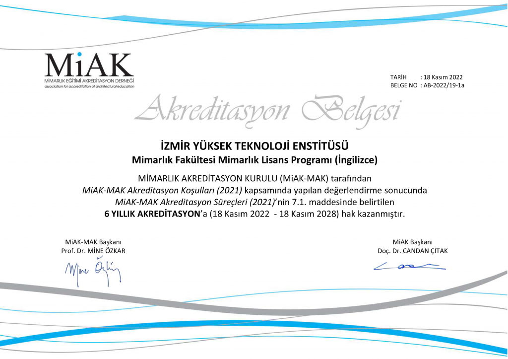İYTE Mimarlık Fakültesi Dekanlığı 35430 Urla / İzmir